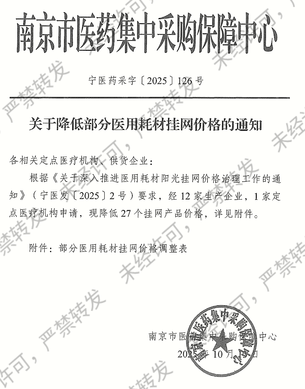 寧醫(yī)藥采字〔2025〕126號—關(guān)于降低部分醫(yī)用耗材掛網(wǎng)價格的通知